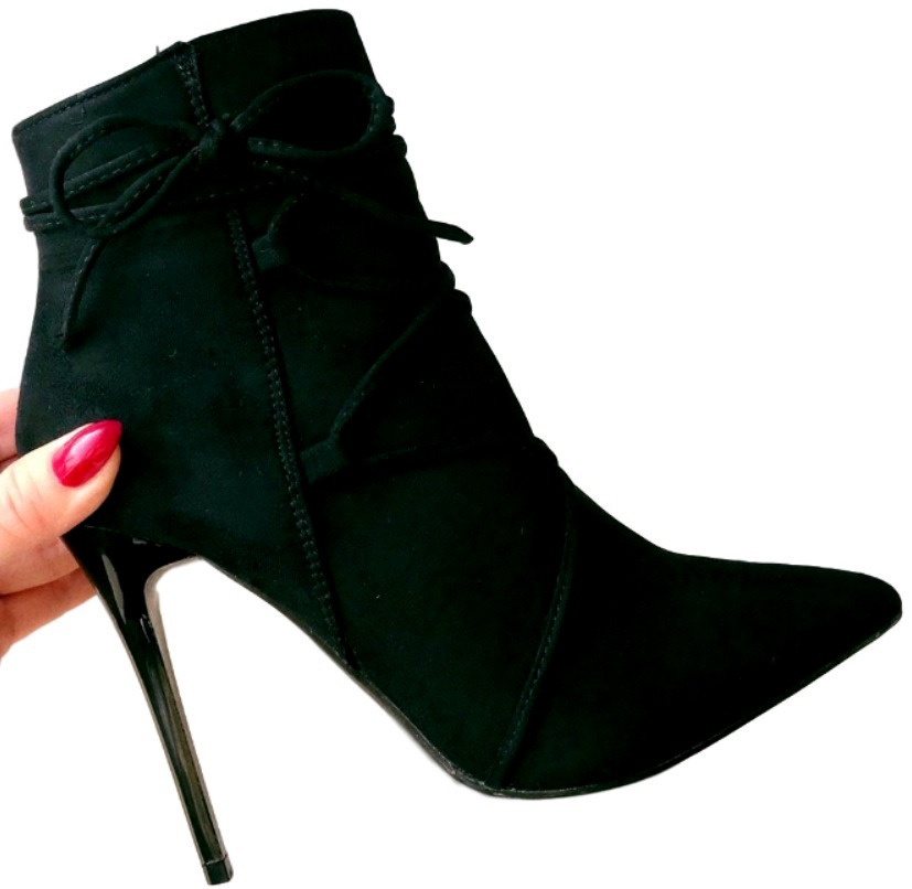 Botki na szpilce czarne w sklepie internetowym yups ✓ najnowsze trendy. Czarne botki wykonane z wysokiej jakości materiału imitującego skórę lakierowaną. Szybka, łatwa i lokalna sprzedaż rzeczy z drugiej ręki. Botki szpilki zamszowe czarne loppi. Czarne botki ze złotą blaszką.